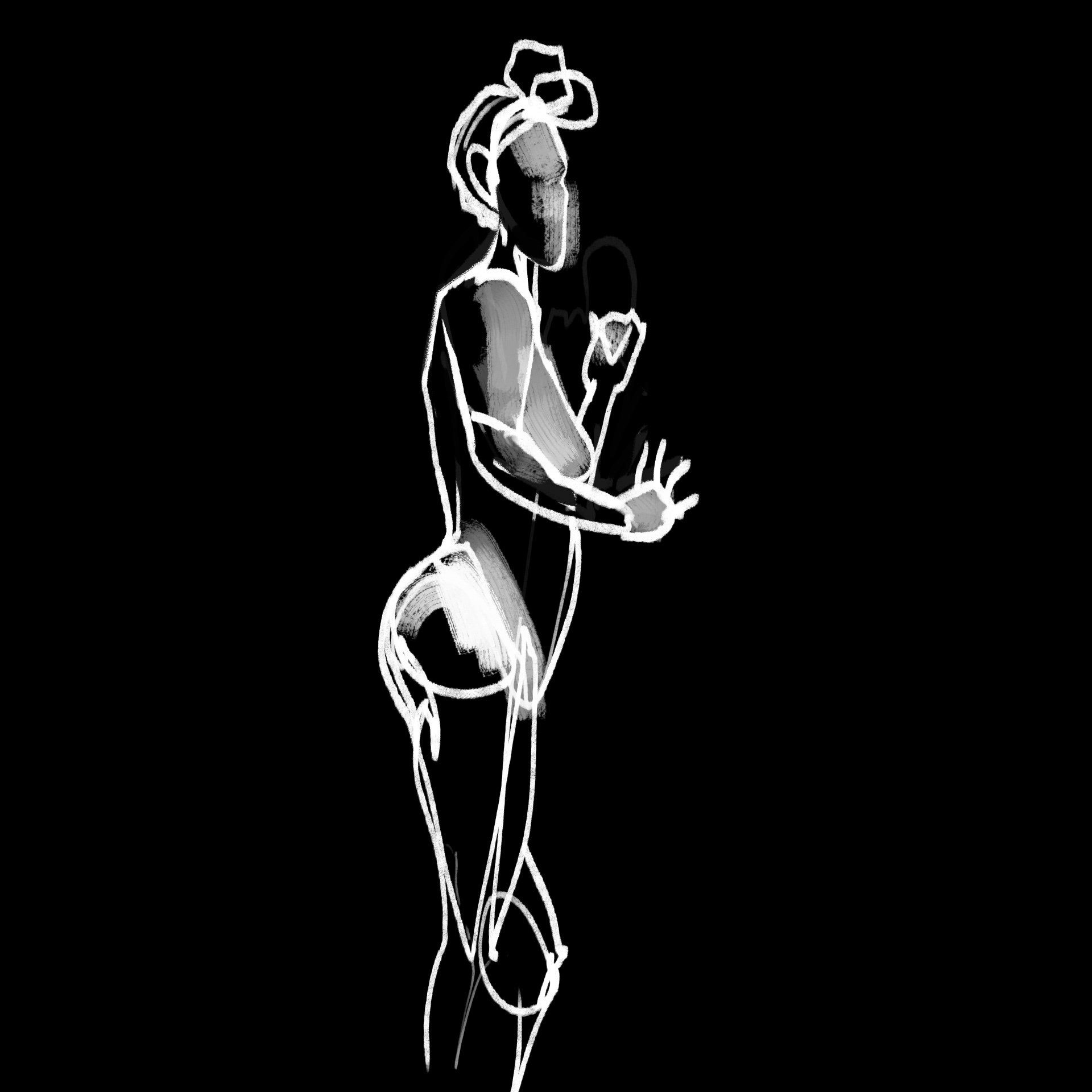 Thanks to Brooklyn Figure Drawing via Zoom on a Tuesday night! and especially to the model Leaflin Lore Winecoff. She provided two camera angles for the artists.